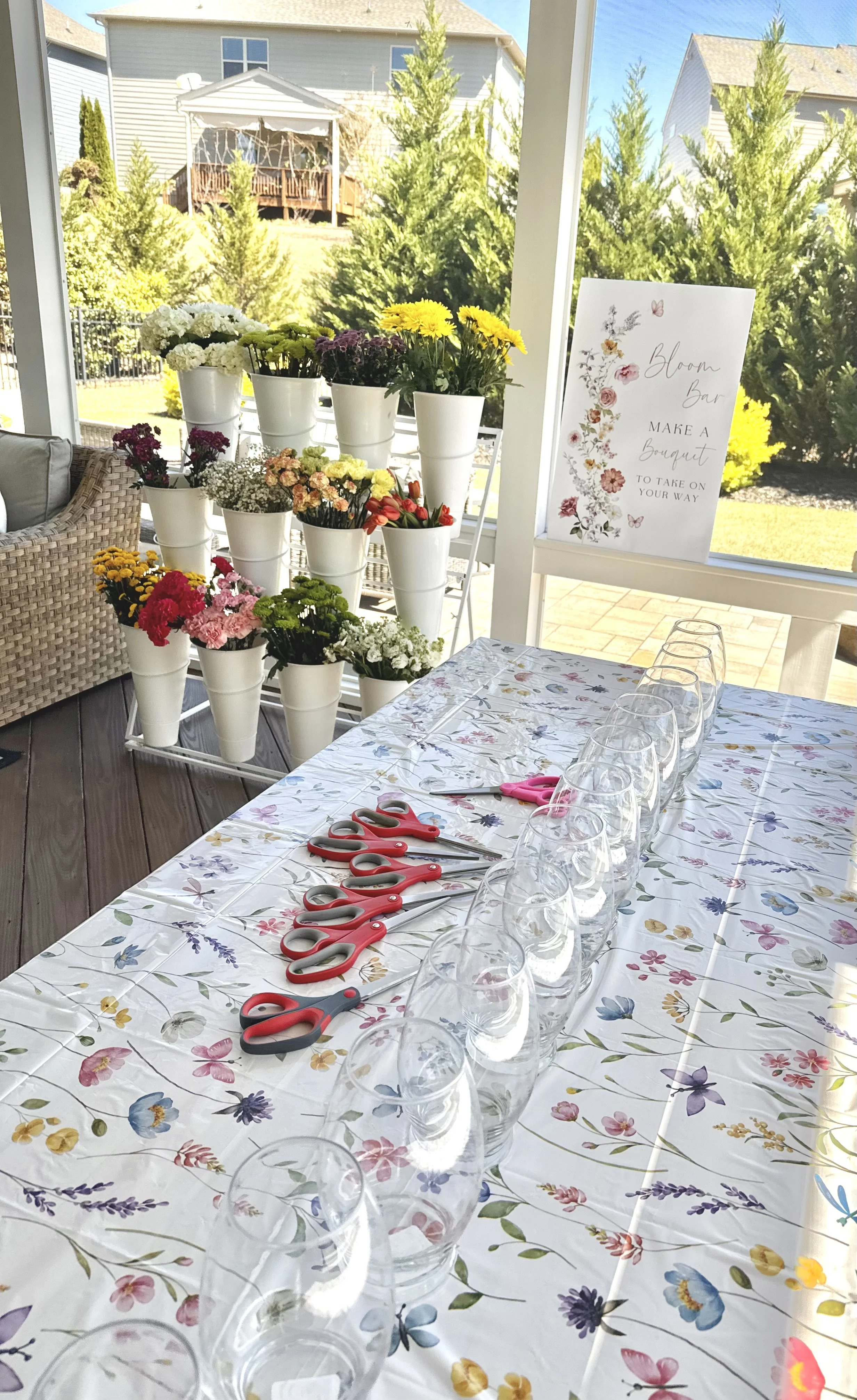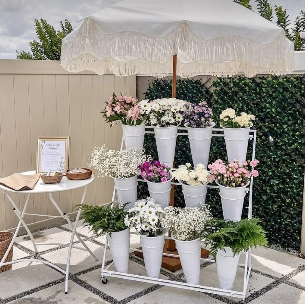 • Curated selection of 12 seasonal blooms with our 12 bucket white bloom stand