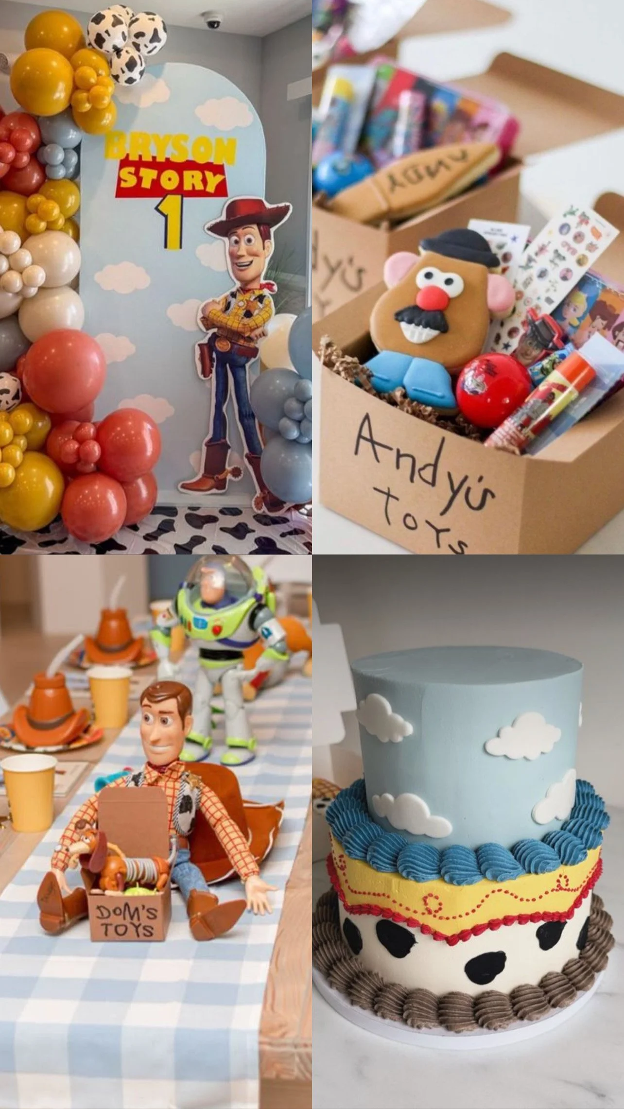 A playful adventure inspired by the classic movies, featuring Woody, Buzz, and all their friends with themed snacks, activities, and a vibrant balloon backdrop.